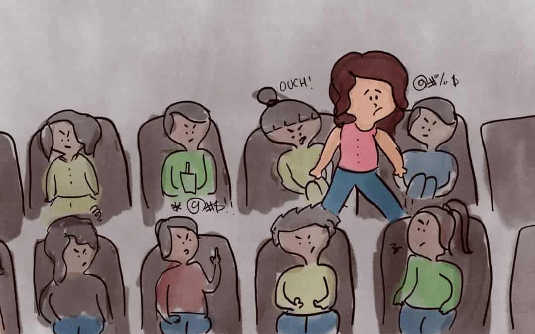 There I was, sitting in a packed movie theater. I waited two years for this sequel and I’ve got enough popcorn and diet soda to last me a full three hours. Fifteen minutes into the movie, the hero and villain are facing off for the first time when a lady bursts into the theater. Trying to find a seat, she awkwardly tries to squeeze into the middle of the row in front of me blocking the best part of the movie. “What a rude and inconsiderate person!” I think to myself as I dodge her body when she scuffles by.