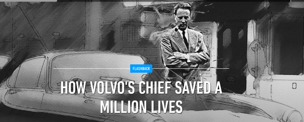 The Volvo brand has long branded itself as obsessed with safety. Just last month, CEO Håkan Samuelsson warned against the hazards of rolling out self-driving vehicles before they’ve been fully proven to be safe. “Otherwise,” he said, “you’re going to kill a technology that might be the best lifesaver in the history of the car.”These days, Volvo’s using technology like in-car cameras to tackle scourges such as drunk and distracted driving. Half a century ago, it was all about the three-point seat belt — an invention the company, led at the time by CEO Engellau, gave away for free. That’s why more than 1 million people owe Volvo a pretty significant debt of gratitude: By institutionalizing the seat belt, the carmaker believes it saved that many lives.ENGELLAU WAS MOTIVATED BY A DEEPLY PERSONAL FACTOR: A FAMILY MEMBER HAD BEEN KILLED IN A CAR ACCIDENT.