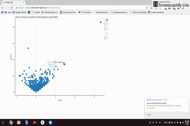 Based on the feedback of many people whose work I respect quite a bit, I wanted to explicitly lay out a few caveats to the above analysis. First, this piece is intended as a fun thought experiment, not a definitive ranking, or a scholarly contribution to the field of military history. I believe some of the results from this project, especially Lee and Rommel, provide interesting data points for broader discussions of their tactical abilities. In no way do I claim my analysis provides the full picture, or anything close to it.Furthermore, since I rely heavily on Wikipedia for data and the categorization of that data, there are holes and inconsistencies in my inputs. Given my personal lack of resources, it is implausible for me to conduct a project of this scale while checking the precision of each and every data point.Finally, I must reiterate that my ranking is of a general’s tactical value added, not their overall strategic abilities, or who would win in a hypothetical head-to-head with equalized troops and equipment.Again, I believe the vast majority of readers interpreted this piece as I intended — a thought experiment with interesting results and entertaining interactivity. Thank you to everyone that has read the piece and/or provided feedback.UPDATE 12/8: By popular demand, the visualization now includes average WAR added per battle. Just hover over a general’s dot and ‘WAR per battle’ appears in the popup window.Additionally, some people have had trouble navigating the mess of a GitHub repository associated with the project. I have put two important spreadsheets in this Google Drive: one with all of the troop number data, and another with the WAR outcomes for each battle.UPDATE 12/6: I wanted to respond to a few reasonable and persistent strands of constructive criticism I’ve received in the past couple of days.