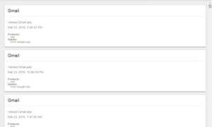 First, every Google Ad I’ve ever viewed or clicked on, every app I’ve ever launched or used and when I did it, every website I’ve ever visited and what time I did it at, and every app I’ve ever installed or searched for.