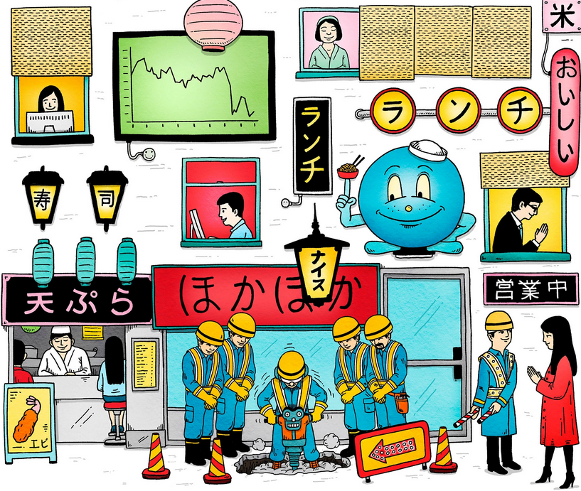 On another occasion, while waiting at a bus stop in the seaside city of Kobe, I found myself watching a group of five men who were drilling a hole. Or rather, one of them was; the other four were watching him. For the whole 30 minutes, that’s all they did. But they didn’t do it reluctantly, or while checking their smartphones, or gossiping, or anything. It was like a demonstration: “All other techniques for watching a guy dig a hole are incorrect. This is how you watch a guy digging a hole.”