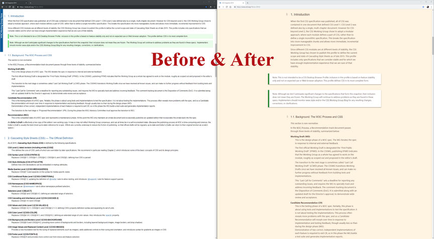 Shameless plug: most web specs look super-gross so I wrote a Chrome extension to make ’em look pretty.