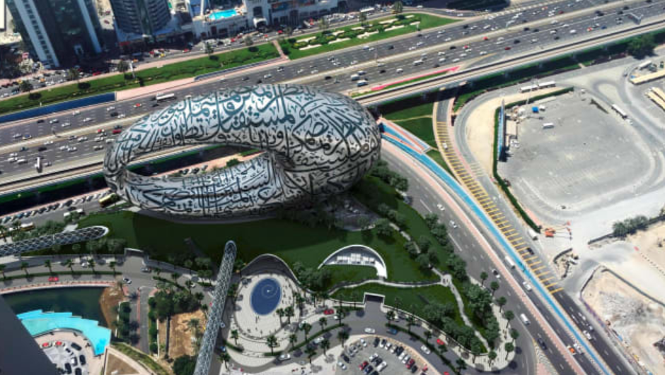 Drivers on Sheikh Zayed Road, the largest highway in Dubai, will have noticed what looks like a giant eye rising alongside the iconic Emirates Towers.The eye — technically a torus shape — is the latest grand statement of ambition to mark the emirate’s skyline.The Museum of the Future stands encased in stainless steel adorned with Arabic calligraphy. The design has already won awards, although the museum does not open until next year. Plans for the interior are equally ambitious. The museum aims to serve as a base for exploration of the greatest challenges and technologies that will shape the future, from climate change to medical breakthroughs.