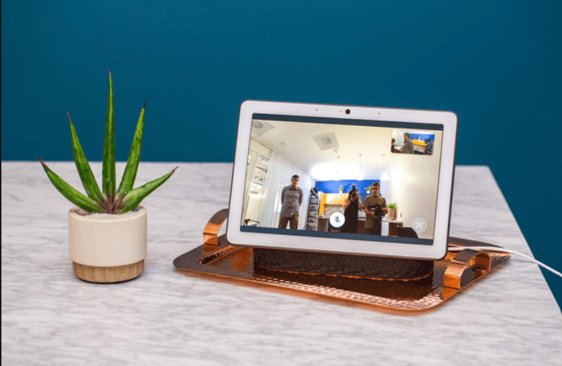 Smart displays with cameras could even be used to join Hangouts Meet group calls. The Nest Hub could potentially be another hardware product to sell to large businesses invested in G Suite, if Google was interested in going all-in on the integration. The display could be used to send emails with voice commands, search for and preview Google Docs files, receive calls from a company Google Voice number, and so on. Smart displays with cameras, like the Nest Hub Max and Lenovo Smart Display, could even be used to join Hangouts Meet group calls.
