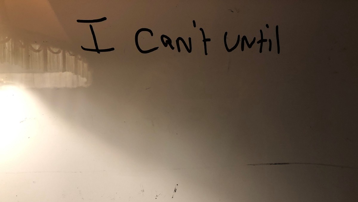 I have a whiteboard above the desk in my home office. On top of the board, I wrote the phrase, I can’t until…