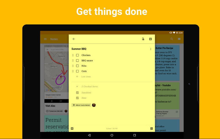 Google Keep does let you create bulleted lists and attach reminders to notes, which makes it a pretty decent task-management tool for those that don’t want to spring for Trello or Asana. You can even add collaborators to notes to assign tasks, like buying milk or painting the garage.