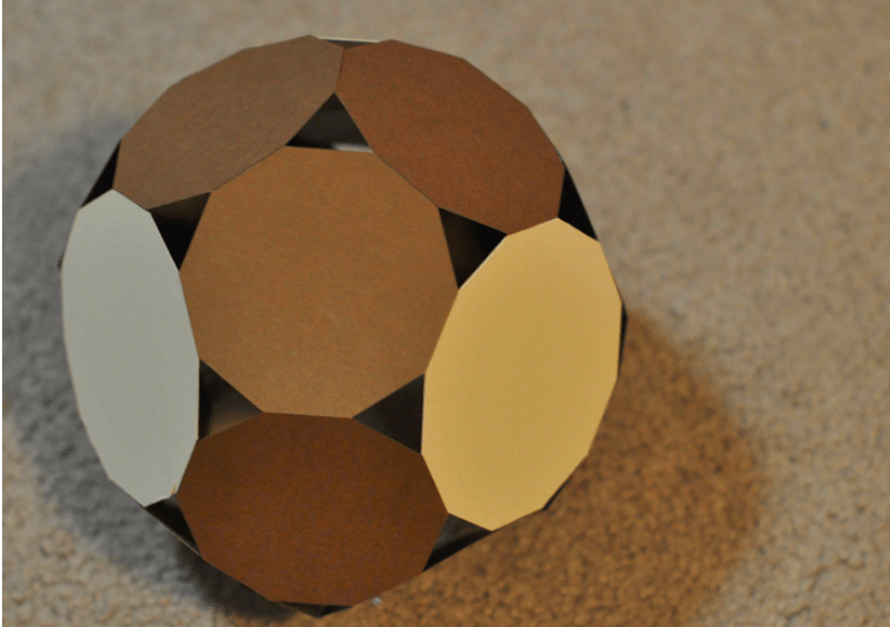 Using stiff paper and transparent tape, Craig Kaplan assembles a beautiful roundish shape that looks like a Buckminster Fuller creation or a fancy new kind of soccer ball. It consists of four regular dodecagons (12-sided polygons with all angles and sides the same) and 12 decagons (10-sided), with 28 little gaps in the shape of equilateral triangles. There’s just one problem. This figure should be impossible. That set of polygons won’t meet at the vertices. The shape can’t close up.