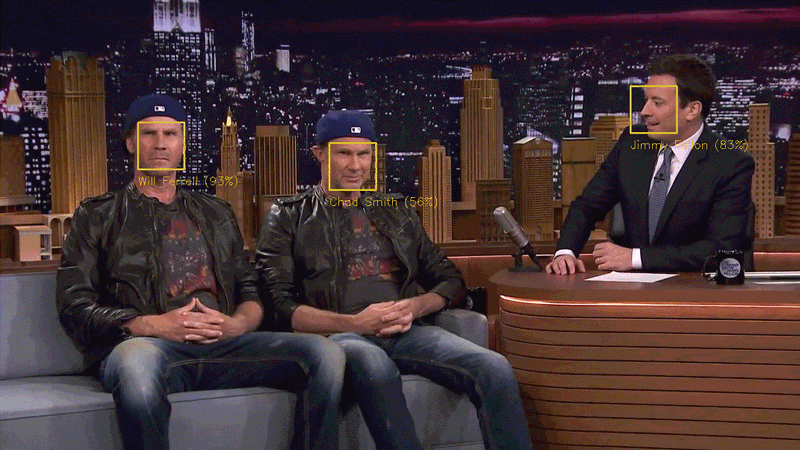 So let’s try out our system. First, I trained a classifier with the embeddings of about 20 pictures each of Will Ferrell, Chad Smith and Jimmy Falon: