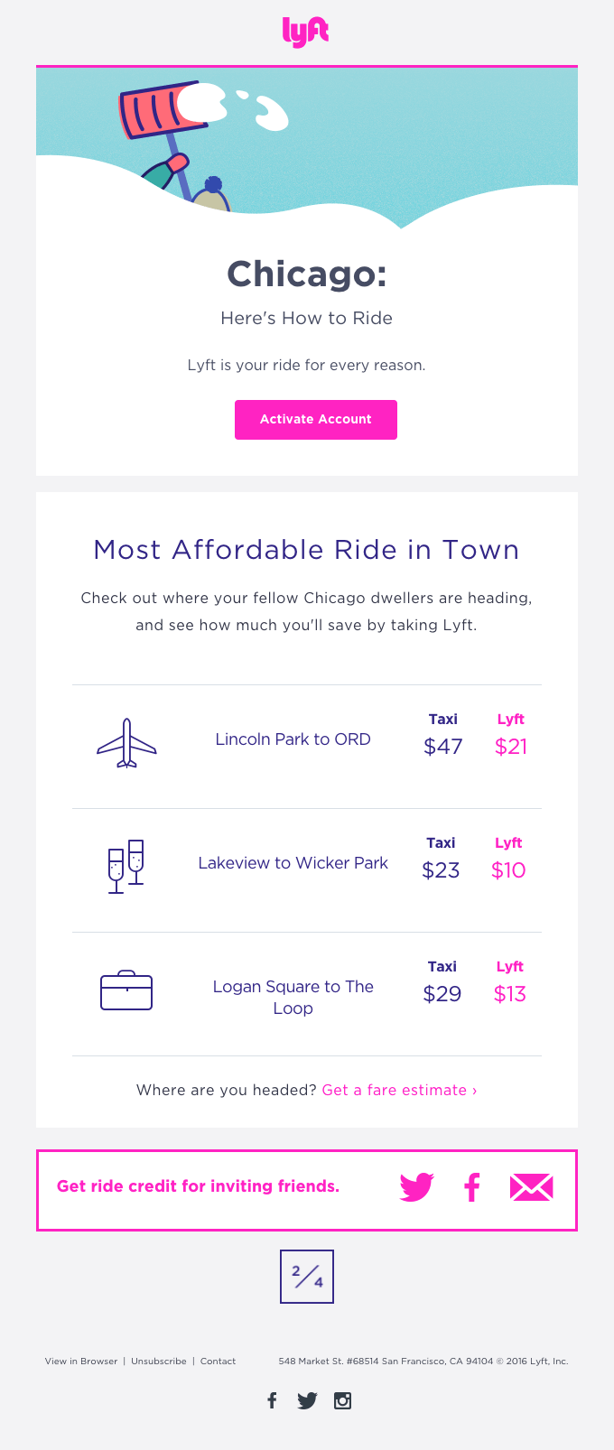 “For every send, we ask ourselves if the recipient would know why they received the message, and understand that the content is meant just for them. We consider email and push notifications an extension of the product experience, and always push ourselves to use data to make the content personally relevant and meaningful. We’ve built our business around treating people better. Respecting the inbox is one way we strive to live this value.” — Nick Allen, Head of Engagement at Lyft