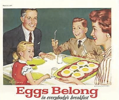 But because of Keys’ role in developing nutrition standards for soldiers during WWII, he had tremendous political clout with congressmen, agency bureaucrats, and the media. Encouraged by the results of his study, Keys began to lobby heavily for the U.S. government to recommend low fat, low cholesterol diets. In 1977, Senator George McGovern, the chairman of the Senate Select Committee on Nutrition and Human Needs, published dietary guidelines based on Keys’ research that would radically change how Americans ate. The guidelines called for a diet low in fat and cholesterol and high in carbohydrates from vegetables and grains. The USDA issued guidelines recommending only 300 mg of dietary cholesterol a day. Which isn’t very much. Just two whole eggs contain 374 mg of cholesterol.