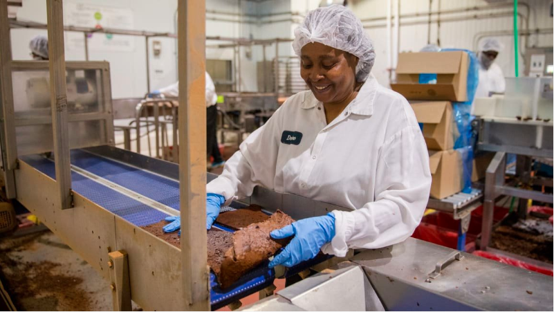 At Greyston, which currently employs 130 people, open hiring creates a pipeline for careers on the bakery’s manufacturing floor and throughout the rest of the company’s operations. People who are given a job start off as apprentices, during which they go through a 10-month job training and life-skills course. Around half the people who begin an apprenticeship choose to complete it and stay at Greyston, and when they do, they’re then assigned an entry-level job–working the mixing machines or overseeing the slicing and packaging of different-sized brownies for distribution.