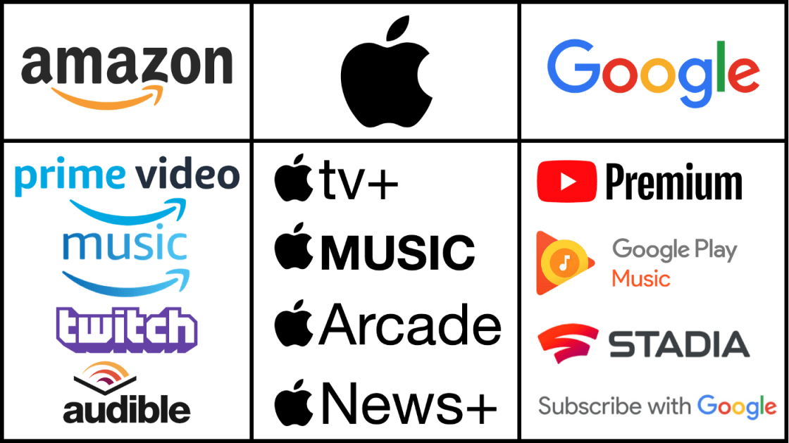 It should be no surprise that Apple’s offerings are the most well-branded and easy to understand from a consumer perspective: Apple Music, Apple News+, Apple Arcade, and Apple TV+.