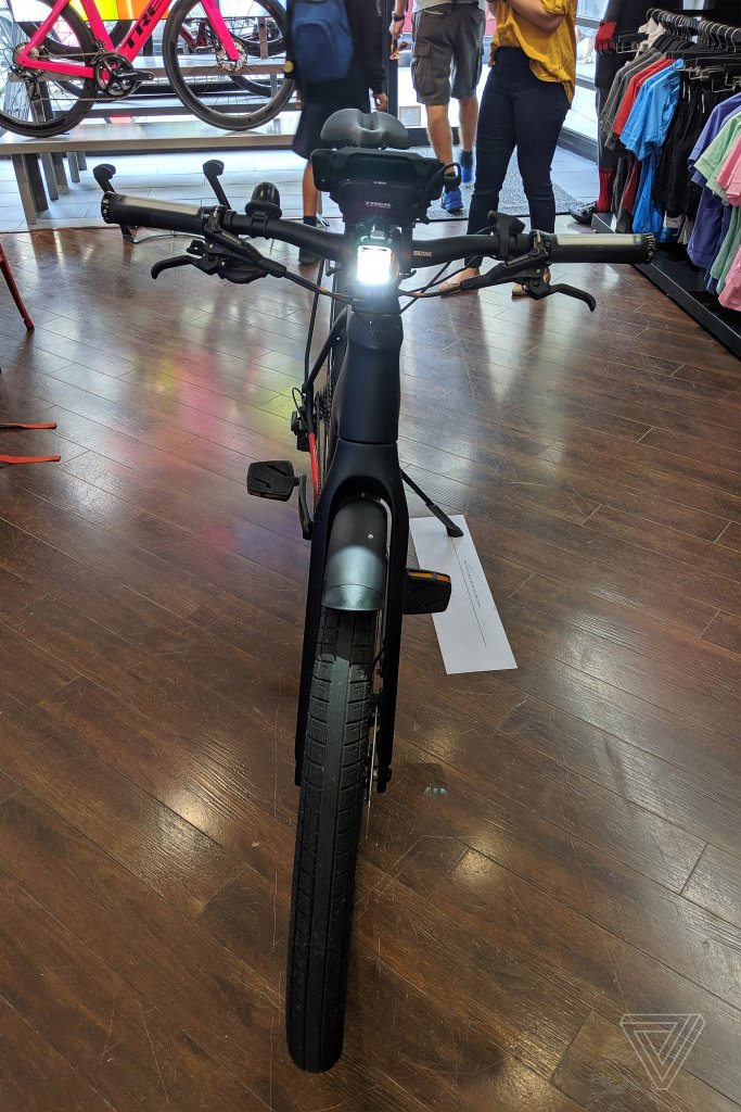 On my brief ride around the park, I found the 9.9S to be a delightfully speedy and smooth ride that was equally enjoyable in low- and high-power settings. I wouldn’t take the bike off-road, though, without getting some added suspension in my seat or front fork. But that said, the 27.5-inch tires, made by Trek’s own Bontrager brand, were comfy and — I was surprised to learn — made specifically for e-bikes with a thicker piece of rubber in the middle of the tread to provide more traction.