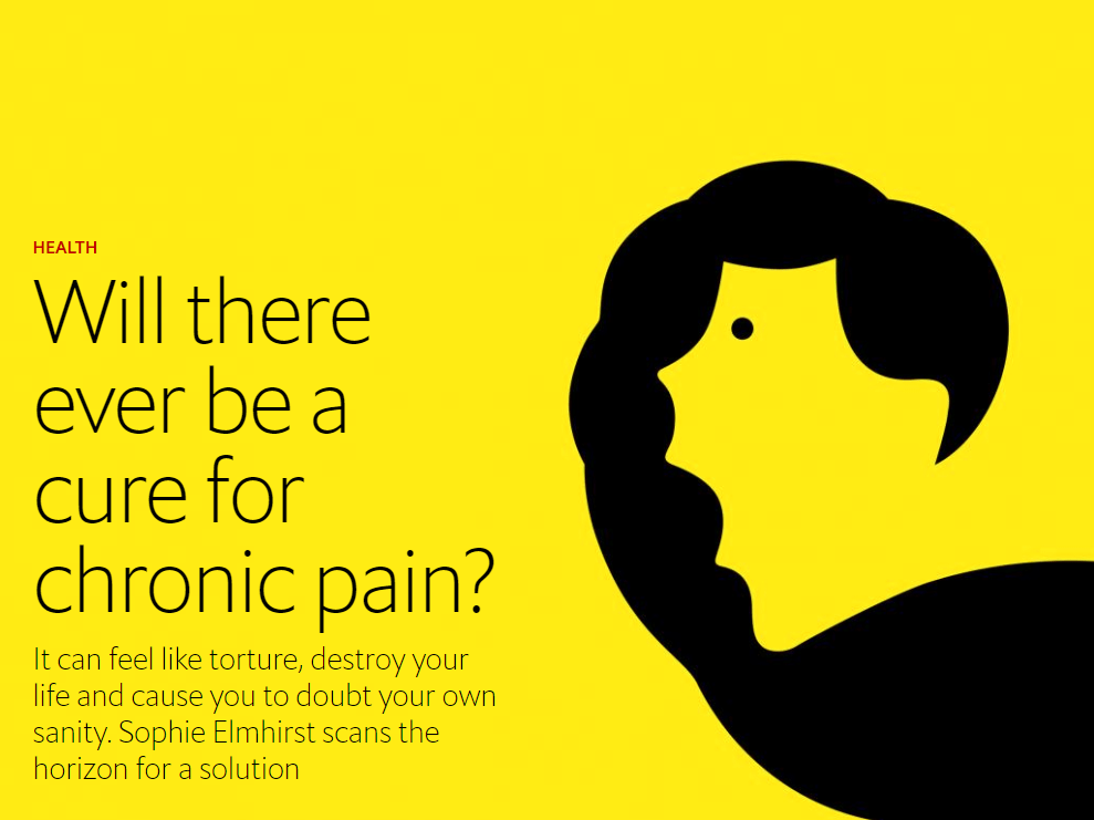 After her fall, Louise was referred to a specialist who found nerve damage in her arm. She had three operations and a sympathy-inducing cast. But then the pain got worse and spread to her back. She went to another specialist to have a spinal-cord implant. An MRI scan showed she had a herniated disc. The pain continued to spread. It became so all-encompassing, from arm to back to entire body, that Louise started to struggle at work. She wondered if the pain was partly caused by stress. She worked for a large IT firm, travelled frequently and had recently been promoted. She spoke to a manager who said he understood because he’d had toothache last week. This was nothing like toothache, she wanted to say. Nothing at all.