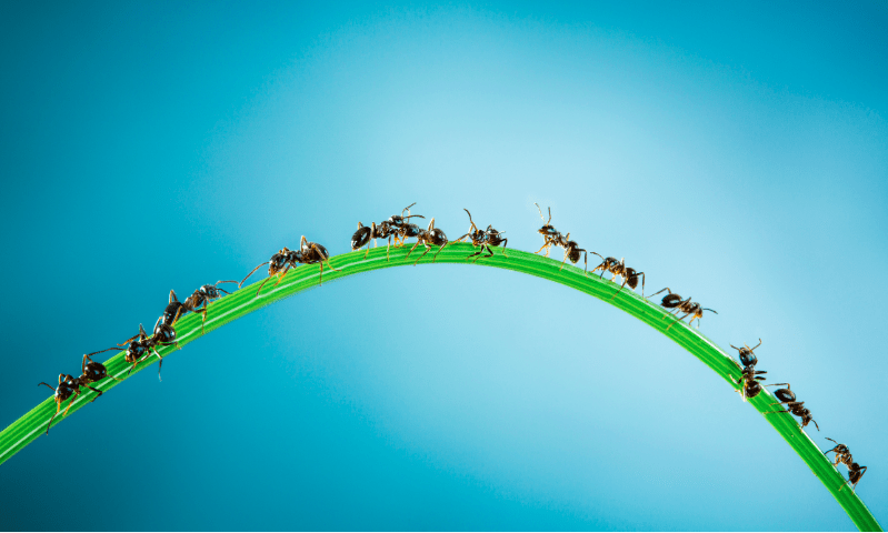 A tacit recognition of the power of a well-connected network underlies a widespread fear of ants. What is scary about ants on the kitchen counter? A moment’s reflection should reassure anyone that they are indeed much bigger and stronger than even hundreds of ants. What is alarming is the sense that the ants are all connected and working together. But ants function using networks of interactions, not as they do in horror movies, urged on to attack by malevolent leaders. Their effectiveness is not due to powerful individuals who are situated to influence the behaviour of others.