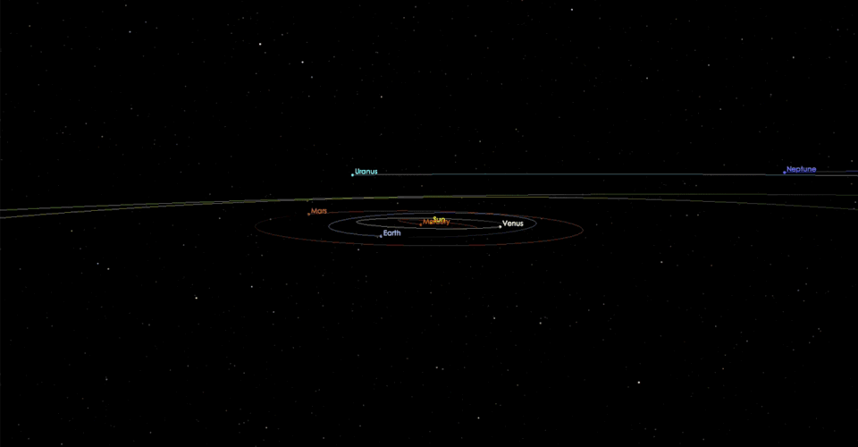 Observations with more powerful telescopes revealed that the comet is moving much faster than an object orbiting the sun at the solar system’s edges would. The clear giveaway, however, has to do with C/2019 Q4’s trajectory as it zooms through space, and in particular a measurement called eccentricity. An object that orbits its star in a perfect circle has an eccentricity of zero. No object in our solar system does that, and most eccentricities fall between zero and one. The higher the eccentricity, the more elliptical the orbit. But any higher than one, and the object isn’t going around the sun at all.