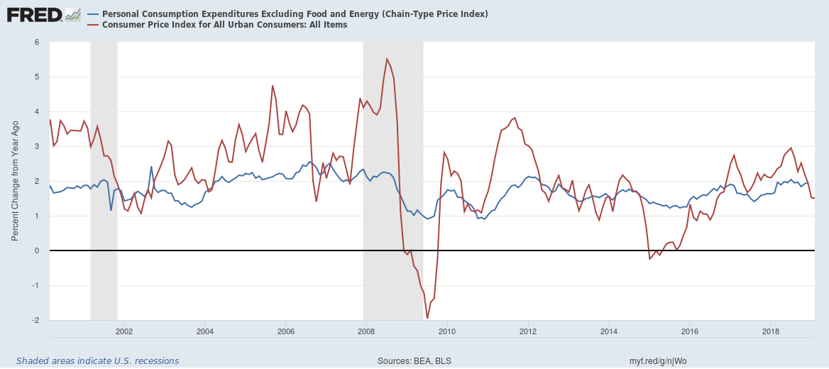 It should be noted that the Fed targets the core PCE measure, and CPI is known to run slightly higher on average. CPI will also be more volatile, since the core measures excludes items like food and energy that are prone to large swings.
