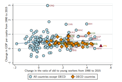 However, some other economists doubt this theory. MIT economist Daron Acemoglu released a paper that threw some cold water on the theory, showing that the link between aging and low GDP growth doesn’t hold up in cross-sectional data. In fact, countries that have experienced more aging show a positive correlation with GDP growth.