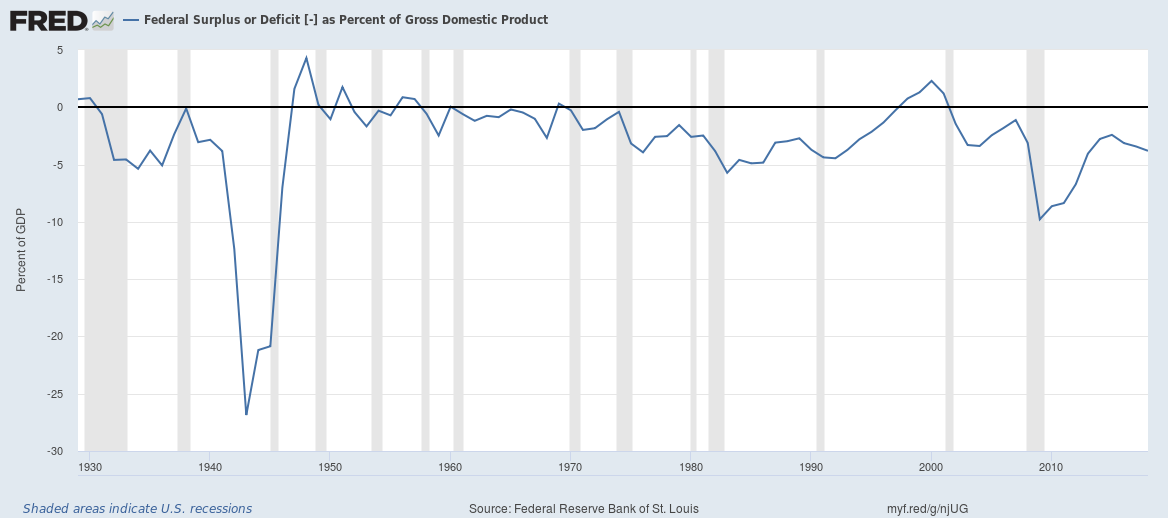This is particularly odd in an environment of fiscal deficits, which are relatively large by historical standards.