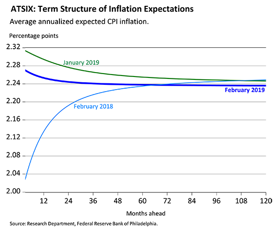It could also mean the inflation problem is now solved. In recent months, inflation has hung very close to the 2% mark, and even slightly exceeded it at one point. The Aruoba Term Structure of Inflation Expectations (from the Federal Reserve Bank of Philadelphia) show CPI expectations anchored between 2.24–2.28%.