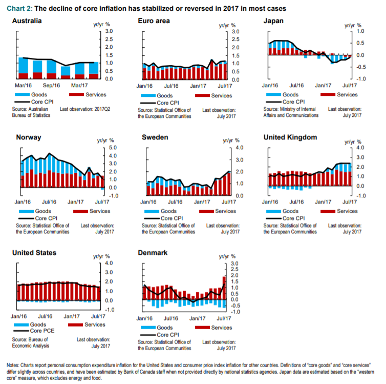 Using data from a panel of developed countries, they noted that low core inflation metrics generally stabilized or rose through-out 2017.