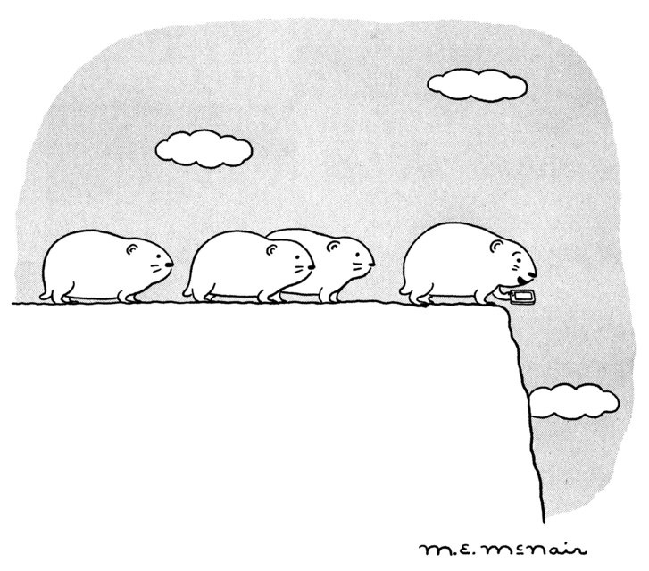 “Hey, I just got my thousandth follower!”Cartoon by Elisabeth McNair