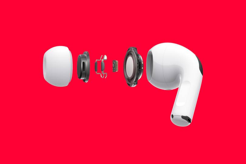 As is standard, the AirPods Pros use two microphones to remove background noise. An outward-facing mic is there to detect external sound and environmental noise, while a second inward-facing mic listens toward the ear while the noise cancellation software adapts the sound signal 200 times per second.