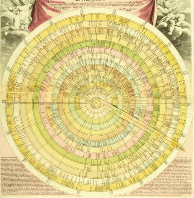 Discus chronologicus, a German depiction of time from the early 1720s, from Cartographies of Time.