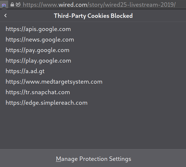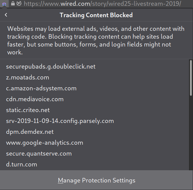 Firefox actually ends up blocking majority of the data Wired tries to load but all the content still looks the same as it would look without any of the blocks.