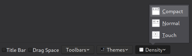 I remove everything from the toolbar. I hide the title bar, menu bar and bookmarks bar. I select a dark theme and put the density at compact. This gives me a nice, clean and minimal browser.