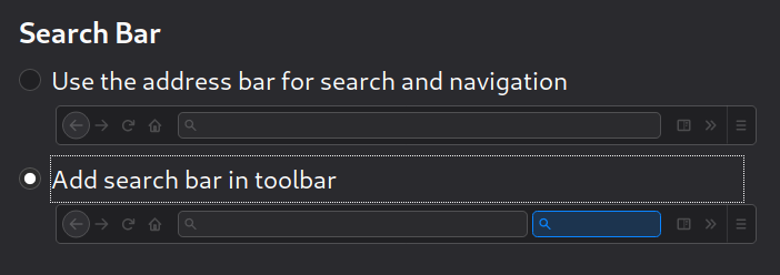 Select “ Add search bar in toolbar “.