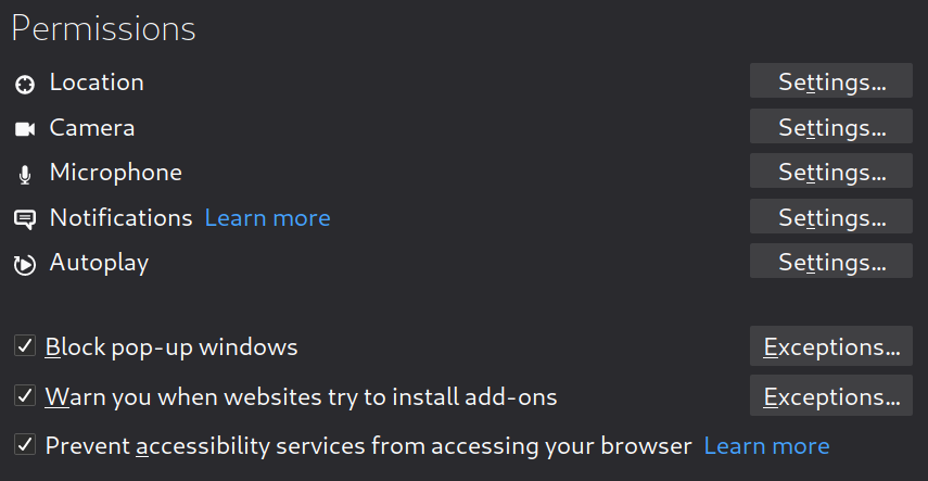 I block new requests asking for access to things such as “ Notifications”, “ Location” and “ Autoplay “ of video and audio.