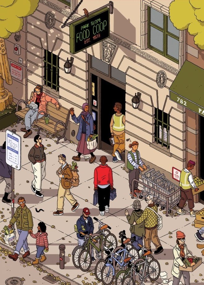 Could co-ops, on the decline in this country since the seventies, make a comeback? For the first time in ages, the label “socialist” is not slander; the moment is there for enterprising utopians to seize. With the help of the Park Slope Food Co-op, a small new member-run co-op called Greene Hill has sprung up on Fulton Street, a mile and a half away; the Central Brooklyn Food Co-op, which describes itself as “one of the only urban Black-led food cooperatives in the nation—and the only one in New York City,” is aiming to open its doors in the summer of 2020. The Park Slope Food Co-op itself is looking into expanding; it has formed a relationship, complete with Parisian shopping privileges, with La Louve, though after Holtz and Ann Herpel went to visit they were accused by membership of using Co-op business to enjoy a French vacation.