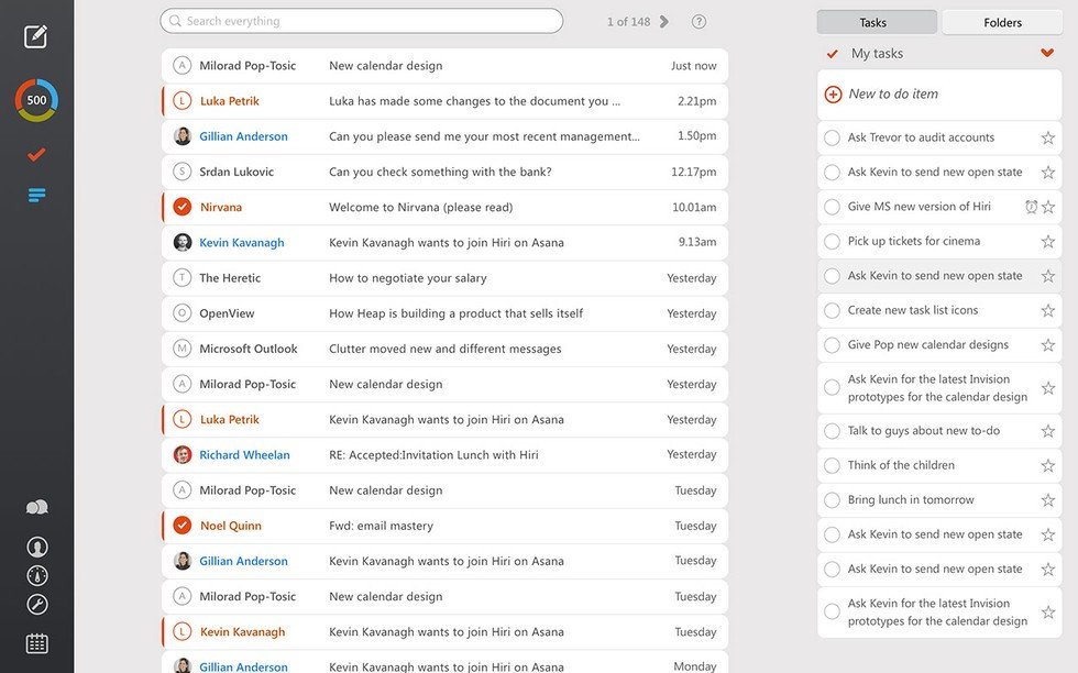 Hiri is an email client app for any Microsoft email: Office 365, Microsoft Exchange, Outlook.com, Live.com, Hotmail, and MSN. It gives you a lovely interface with a dashboard-like view that gives you insight into what’s going on in your inbox. You can filter messages based on whether you need to take action on them or whether they’re informational in nature. It also lets you turn emails into tasks. It makes email less painful for anyone using Microsoft accounts.