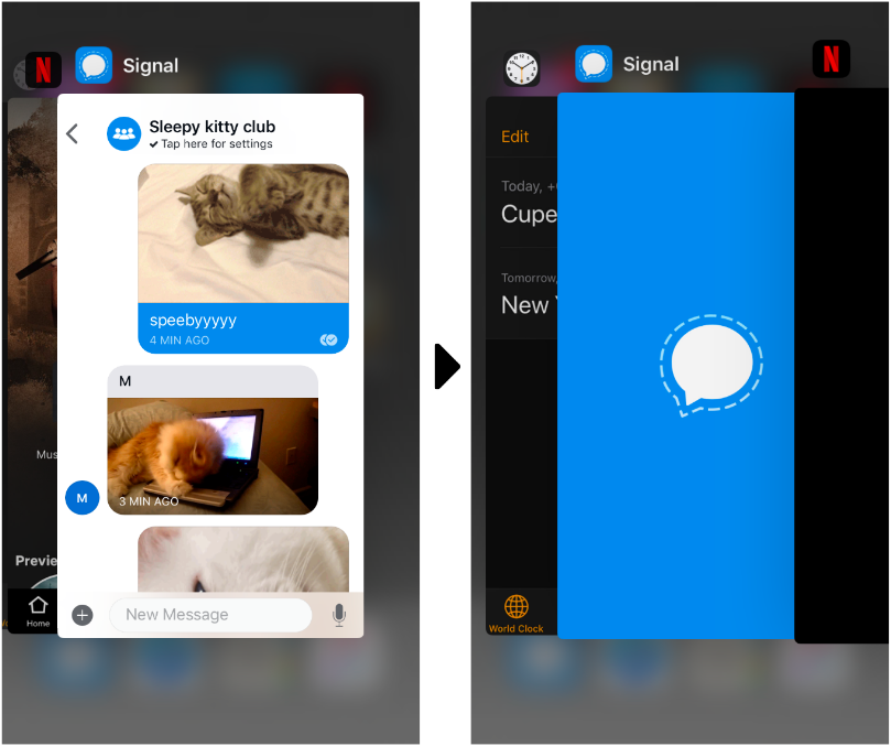 Seeing a preview of an app in your app switcher is convenient, but if someone were standing over your shoulder, they’d be able to see your messages just fine. Signal gives you options to prevent a preview from being shown, unless you explicitly open the app.