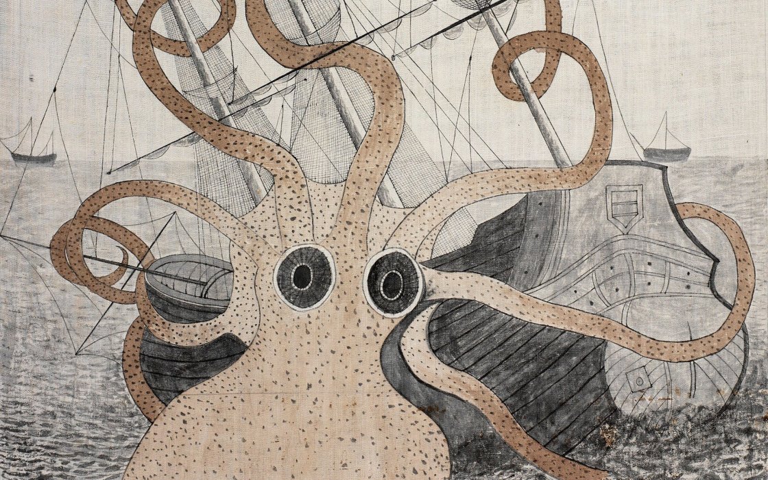 The missing parts left imaginative space, which could be filled by scholars and collectors. Natural historians extrapolated from sailors’ glimpses of real denizens of the deep to write about terrible sea beasts such as the Kraken, Aspidochelone or Cetus. These creatures were linked to bizarre body parts brought back by merchants – tooth-rimmed sawfish rostrums, whale baleen and colourful tropical shells. Even unicorns were to be found, their physical tokens taking the form of the twisted teeth of narwhals, traded from the Arctic. Real, and even quite mundane, creatures were quite literally made into monstrous simulacra, such as the ‘Feejee mermaids’ constructed from monkey heads, fish parts and other materials. Similarly, ‘Jenny Haniver’ dragons and basilisks were eagerly acquired by collectors, shaped from artfully dried rays and skates.