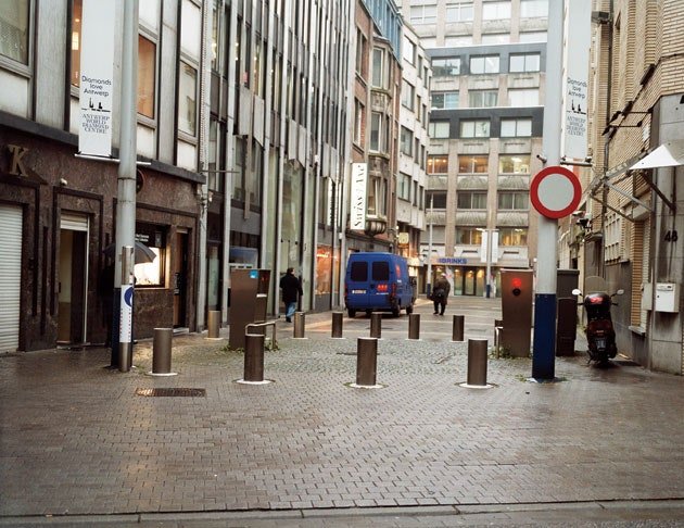 He began his reconnaissance at the police surveillance booth on the Schupstraat, a street leading into the center of the district. Behind the booth’s bulletproof glass, two officers monitored the area. The three main blocks of the district bristled with video cameras: Every inch of street and sky appeared to be under watch. The booth also contained the controls for the retractable steel cylinders that are deployed to prevent vehicular access to the district. As Notarbartolo walked past, he began taking pictures.