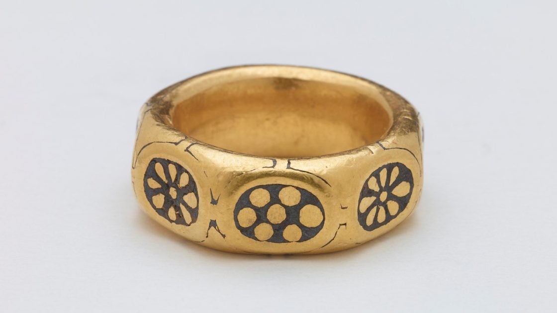 Powell, a warehouse worker in his early thirties, and Davies, a school custodian a dozen years older, were experienced “detectorists.” There are approximately twenty thousand such enthusiasts in England and Wales, and usually they find only mundane detritus: a corroded button that popped off a jacket in the eighteen-hundreds, a bolt that fell off a tractor a dozen years ago. But some detectorists make discoveries that are immensely valuable, both to collectors of antiquities and to historians, for whom a single buried coin can help illuminate the past. Scanning the environs of King’s Hall Hill, the men suddenly picked up a signal on their devices. They dug into the red-brown soil, and three feet down they started to uncover a thrilling cache of objects: a gold arm bangle in the shape of a snake consuming its own tail; a pendant made from a crystal sphere banded by delicately wrought gold; a gold ring patterned with octagonal facets; a silver ingot measuring close to three inches in length; and, stuck together in a solid clod of earth, what appeared to be hundreds of fragile silver coins.