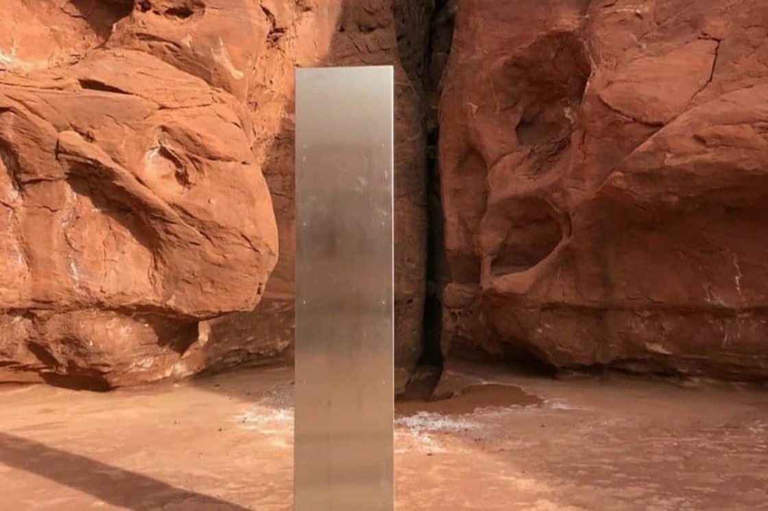 The monoliths are long vertical slabs of metal, each 10 to 12 feet tall. They appear with no warning and disappear just as quickly: First, one in the Utah desert, which emerged on November 18 and vanished on November 27. Second, one outside the Romanian city of Piatra Neamt, which appeared on November 27 and disappeared on December 2. Third, one at the top of Pine Mountain in Atascadero, California, which appeared on December 2, was taken down on December 3, and reappeared on December 4. And fourth, one in Albuquerque, New Mexico, which appeared on December 7 and was taken down the same day.
