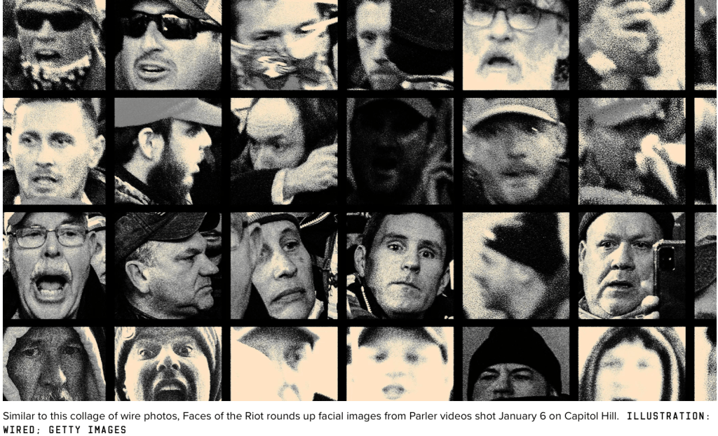WHEN HACKERS EXPLOITED a bug in Parler to download all of the right-wing social media platform’s contents last week, they were surprised to find that many of the pictures and videos contained geolocation metadata revealing exactly how many of the site’s users had taken part in the invasion of the US Capitol building just days before. But the videos uploaded to Parler also contain an equally sensitive bounty of data sitting in plain sight: thousands of images of unmasked faces, many of whom participated in the Capitol riot. Now one website has done the work of cataloging and publishing every one of those faces in a single, easy-to-browse lineup.