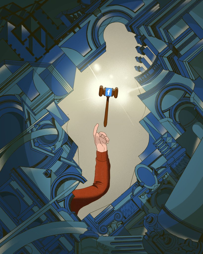 On a morning in May, 2019, forty-three lawyers, academics, and media experts gathered in the windowless basement of the NoMad New York hotel for a private meeting. The room was laid out a bit like a technologist’s wedding, with a nametag and an iPad at each seat, and large succulents as centerpieces. There were also party favors: Facebook-branded notebooks and pens. The company had convened the group to discuss the Oversight Board, a sort of private Supreme Court that it was creating to help govern speech on its platforms. The participants had all signed nondisclosure agreements. I sneaked in late and settled near the front. “Clap if you can hear me,” the moderator, a woman dressed in a black jumpsuit, said.