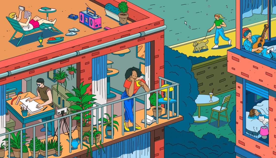 Deep into the thoughtless hypnotism of TikTok one afternoon, I came upon an anonymous urban scene from inside a residential tower in Manchester, England. On an upper floor, beside huge windows shrouded in fog, a man was floating on his back in a gleaming pool, to the soundtrack of the plaintive Frank Ocean song “White Ferrari.” The ten-second video was hashtagged #vibin. In another clip, a woman demonstrated her morning routine, with shots of rumpled linen bedsheets, navy-blue satin pyjamas, and a steaming mug of matcha, along with brief glimpses of other objects: a monstera plant, a burning chunk of palo santo, a busy street outside. Altogether, they evoked a mood of calm, enlightened, prettified productivity. The video was hashtagged #vibes. “I love the vibes at night here,” the caption of yet another TikTok montage read: a dim apartment lit by a pink neon sign that says “Where Love Lives,” a wandering Shiba Inu, an orb lamp on top of a Picasso art book, a wall-mounted flat-screen playing the popular ambient-music YouTube channel “lofi hip hop radio – beats to relax/study to.” If I had to pinpoint it, I’d say that the video’s vibe was chill Gen-Z good taste, the world of a teenager whose parents have given up on curfews and screen-time restrictions: midnight-basement-desktop-computer vibes.