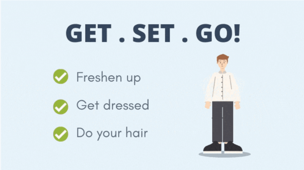 Getting dressed includes all the appearance-based tasks — taking a shower, doing your hair, and minimal makeup. These factors make you look presentable.