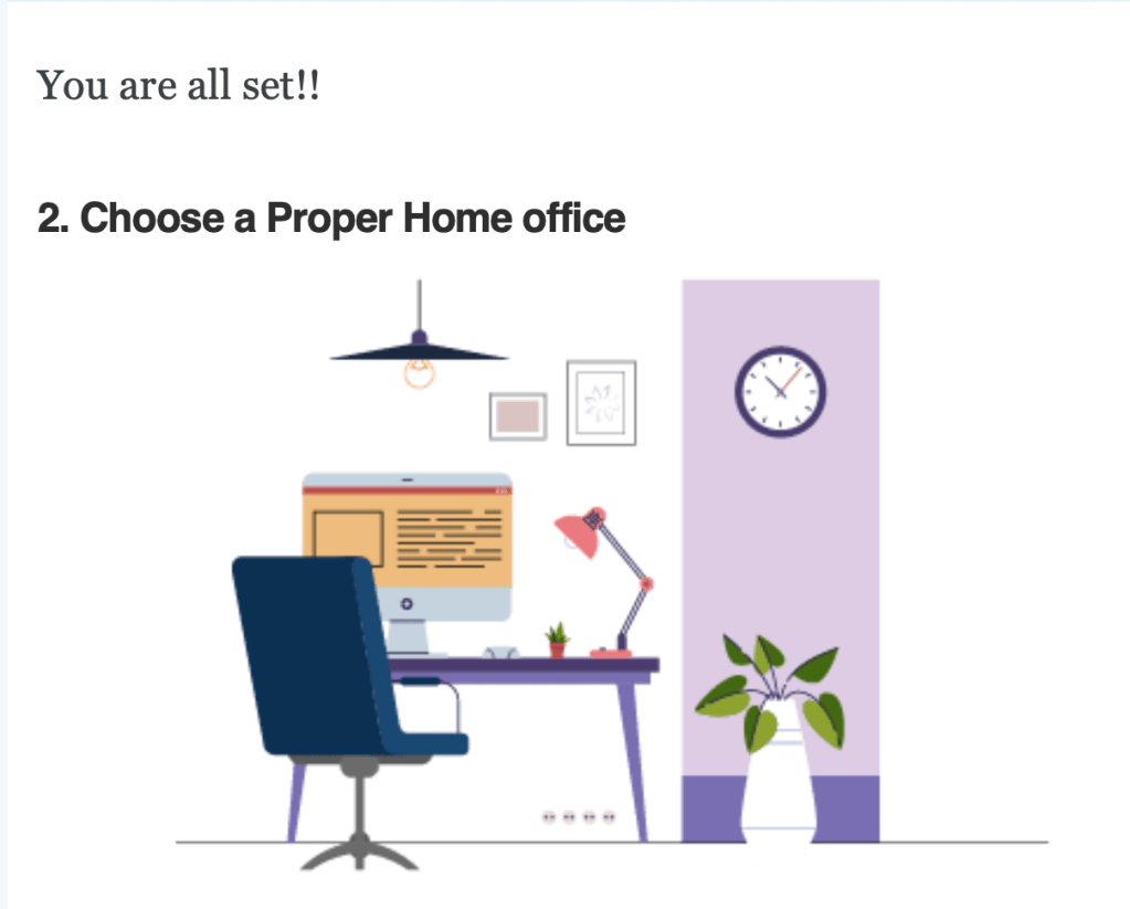 A few small tricks can help you feel like you’re in the office even though you’re working from home. Continue to do things that are in line with your company’s culture. No doubt working from home disrupts the experience. We frequently lose touch with our version, which used to be active, and commutes to work daily.
