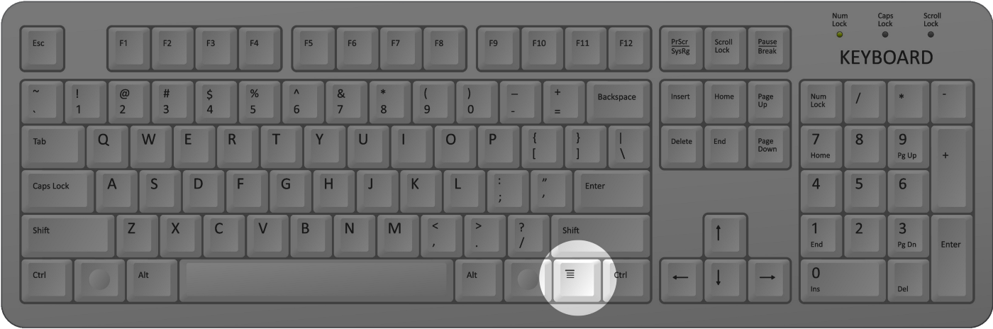 A standard keyboard includes a key that brings up the context menu. It’s equivalent to right-clicking.
