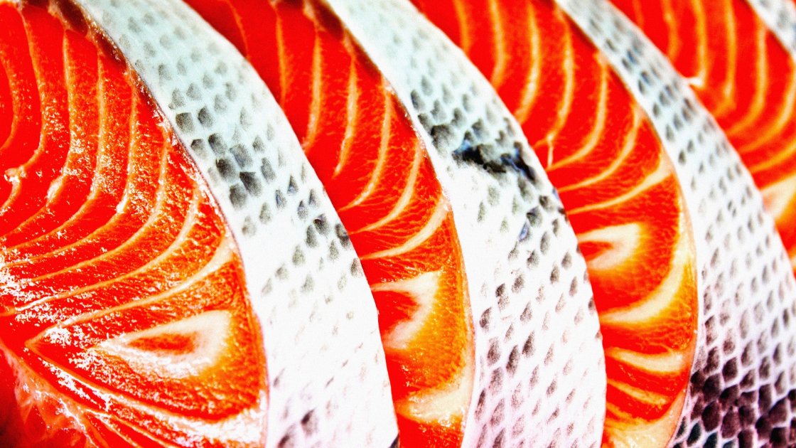 Fish aren’t simply a much healthier source of protein; they have a relatively small impact on the environment too. Compared to most land animals, the Atlantic salmon swimming in Holm’s farm are remarkably efficient machines. Since they are cold-blooded and are supported by the buoyancy of water, fish can channel more of their energy into growth, which means they need fewer calories from food than other livestock. It takes about 1.15 kilograms of fish feed to produce a kilogram of farmed salmon – significantly lower than any commonly farmed land animal. It’s the same basic reason why lab-grown meat companies are opting to grow beef in bioreactors: more efficient methods of meat production should come with lower greenhouse-gas emissions. In a world of 9.7 billion people in need of a nutritious, readily available and sustainable source of protein, fish look like one of our best bets.